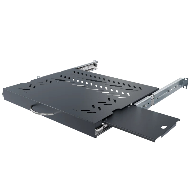 Stalflexin 19 tuuman 1U-teline on suunniteltu erityisesti näppäimistön ja hiiren kätevään sijoittamiseen telineympäristöihin, jolloin kaapin sisälle muodostuu käytännöllinen työpiste. Sen liukuva rakenne mahdollistaa helpon pääsyn laitteisiin käytön aikana ja pitää työtilan kompaktina ja järjestyksessä, kun laitteita ei käytetä. Tämä tekee siitä ihanteellisen ratkaisun palvelintiloihin, verkkokaappeihin ja teknisiin asennuksiin, joissa tilankäytön tehokkuus ja saavutettavuus ovat olennaisia. Vakiomallisella 19 tuuman leveydellä ja 1U:n korkeudella hylly integroituu saumattomasti tavallisiin telinejärjestelmiin. Säädettävä asennussyvyys tukee 450–610 mm:n kaappeja, mikä takaa yhteensopivuuden monenlaisten telinekokoonpanojen kanssa. Tämän joustavuuden ansiosta hyllyä voidaan käyttää sekä uusissa asennuksissa että olemassa olevissa kokoonpanoissa ilman lisämuutoksia.