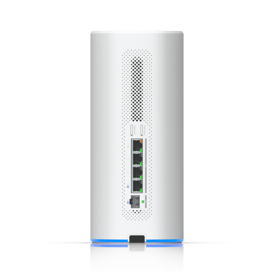 UniFi Dream Router 5G Max yhdistää tehokkaan laitteiston ja joustavat liitäntämahdollisuudet kompaktissa pöytämallisessa laitteessa. Siinä on 4-porttinen 2,5 GbE -kytkin, joka mahdollistaa nopeat langalliset yhteydet useille laitteille, ja yksi portti tukee Power over Ethernet -toimintoa 15,4 W:n tehoalueella. Tämä mahdollistaa yhteensopivien laitteiden, kuten tukiasemien tai kameroiden, suoran virransyötön ilman erillisiä virtalähteitä. Suurikapasiteettisia uplink-yhteyksiä varten laitteessa on 10G SFP+ -portti, joka tarjoaa nopean yhteyden edistyneeseen verkkoinfrastruktuuriin tai aggregointikytkimiin. Tämä tekee siitä sopivan ympäristöihin, jotka vaativat skaalautuvaa ja tulevaisuuden vaatimukset täyttävää langallista suorituskykyä. Järjestelmä tukee jopa neljää WAN-yhteyttä, mikä tarjoaa joustavuutta kuormituksen tasapainottamiseen tai vikasietoisuuskokoonpanoihin.
